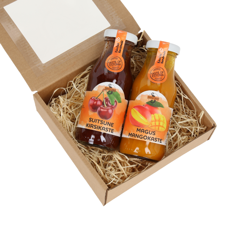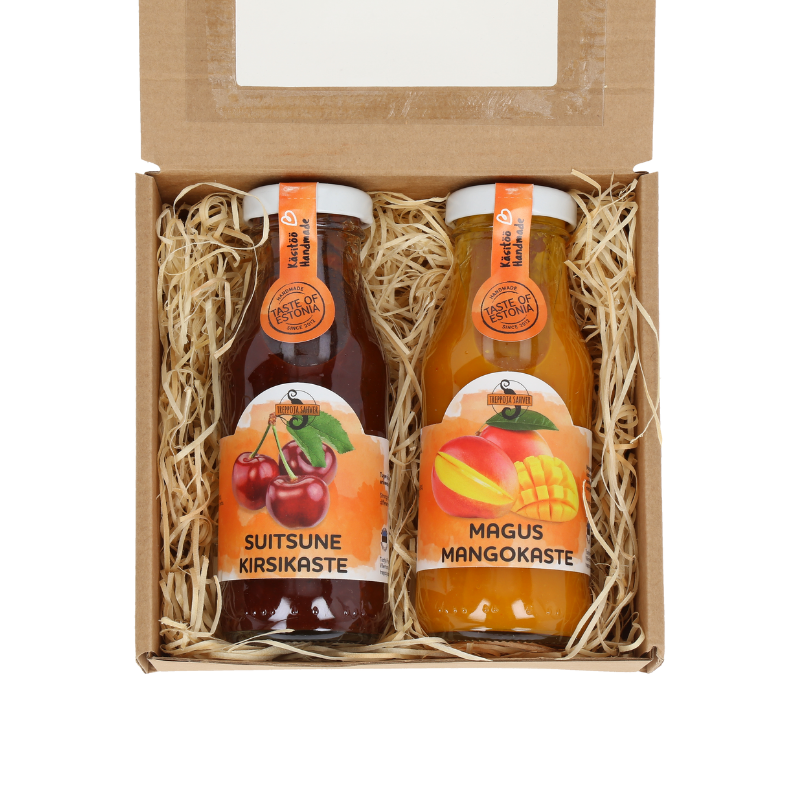 Omal valikul kaks Treppoja Sahvri kastet, pakitud kinkekarpi.