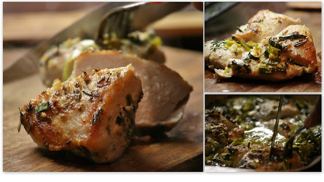 Kanaks tuleks valida fileed ja soovitavalt nahaga. Maitsestamiseks igale fileele hakitud värsket rosmariini ja teelusikas sinepipulbrit, mis lihasse hõõruda. Õli ka veits nii kanale kui pannile ja tükid küpsema, esialgu nahaga vastu panni. Tasub ka pannilabidaga neid veidi survestada, et mõnusalt läbi küpseks ja pruuniks tõmbuks. Seejärel tuleks teha kanale ettepanek külge keerata ja teist poolt peesitada. Niikaua kui teine pool küpsust kogub, hakkida suurem kogus porrut, mõned küüned küüslauku ja visata see kanatükkide vahele. Sinna samasse tubli sorts valget veini ja 100ml rõõska koort.