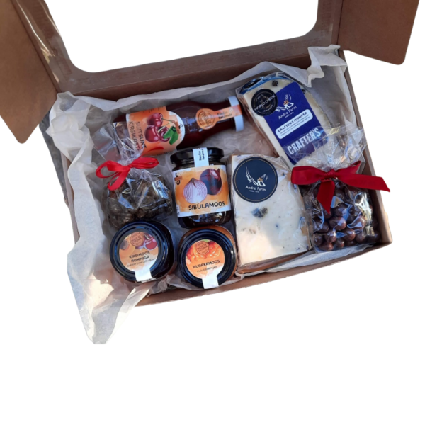 Kingikarpi saad valida neli Treppoja Sahvri toodet, kaks Andre farmi juustu ning maitsva mixi kuivatatud/ šokolaadiga kaetud marjadest ja soolastest pähklitest.